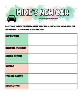 Web pixar shorts are a great way to review the elements of literature that will be sure to create high engagement!after students watch the pixar short mike's new car, this resource. Plot diagram for mike’s new car fill in the boxes with the notes from mike’s new car then do another diagram on the back scene 1: 1) cut the elements of plot.